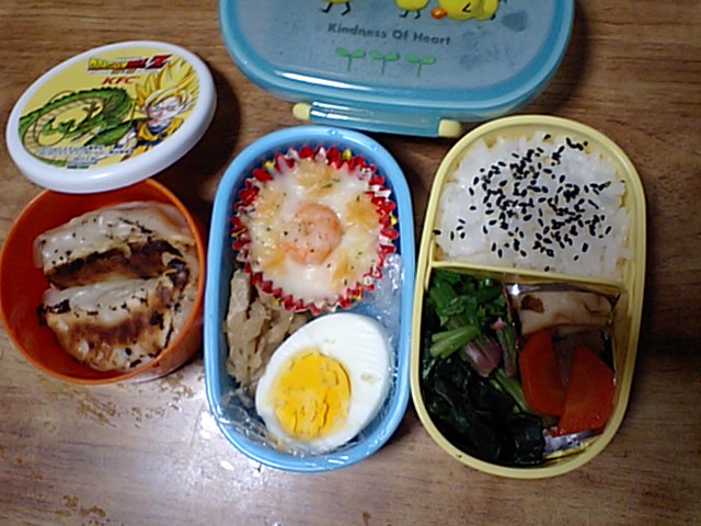 ミニサイズの弁当箱で、ダイエット頑張るぞ!ミニサイズでも満足できるのはいろんなメニューを入れること。