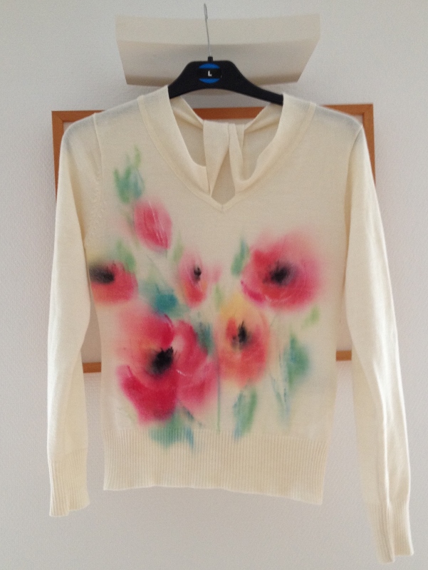 白地のセーターはポピーを描いてみた