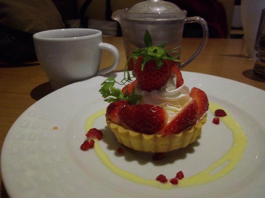 イチゴのタルトを頂きました。 ファミレスのスイーツって、値段がリーズナブルなのに非常に美味しいのが魅力ですね。