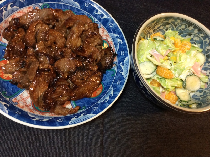 おつまみはラム肉の焼肉、キャベツのサラダです。3日前からお昼はスムージーで麺類をやめ小麦製品を食べていません。気になっていた膝が楽になりました。小麦製品を食べ炎症を悪化する人がいるそうです。私の場合やはり小麦との相性が悪いのかもしれません。でも小麦製品は魅力がありますね。