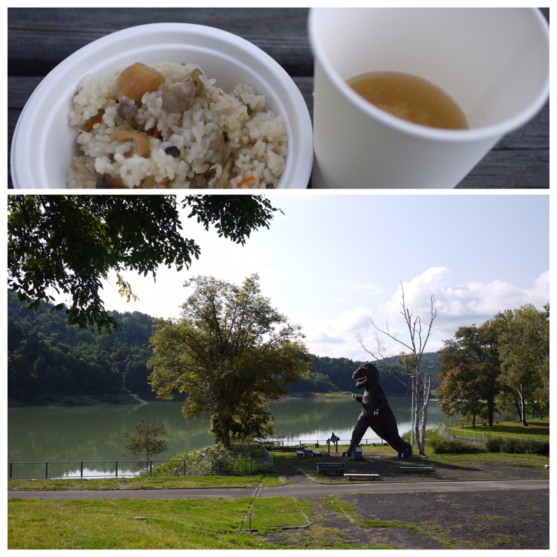 三笠市の桂沢湖で朝ごはんを食べました。空気もごはんも美味しかったです。
