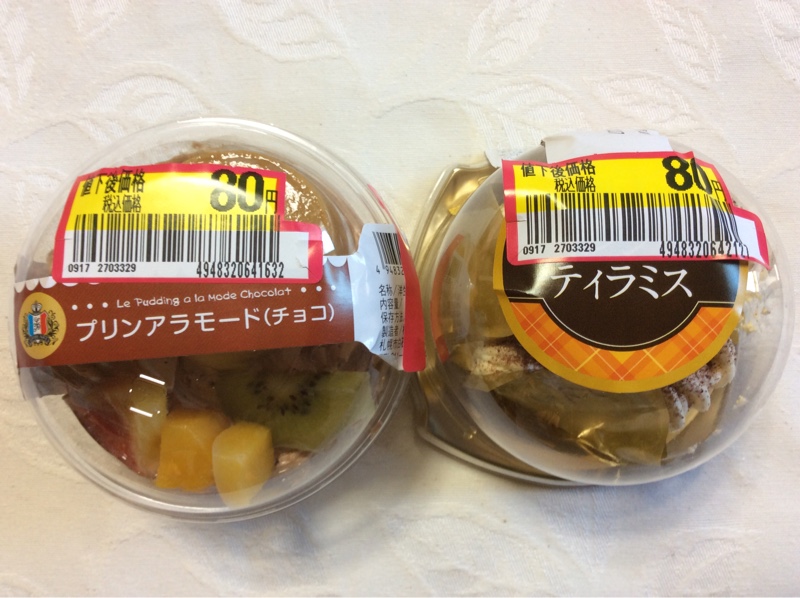 ウォーキングに行ってきました。帰りのスーパーで見切りのデザートを買いました。賞味期限は今日までです。ふたつ食べたら今日 歩いた分が帳消しになるなぁと思いつつ 値段に惹かれて買ってしまいました。今日は11000歩あるきました。