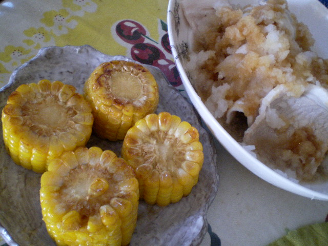 豚しゃぶ&焼きトウモロコシ。