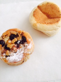 とろたまチーズマフィンと、ドライフルーツとナッツのパン。