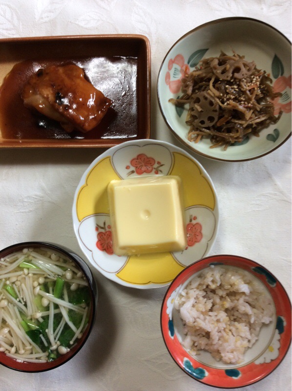 お昼はエビピラフ、枝豆豆腐です(^o^)/