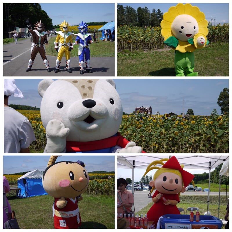 ひまわり畑で見たキャラクターたちです。カメラを向けたらポーズをとってくれました。今日は暑そうです。