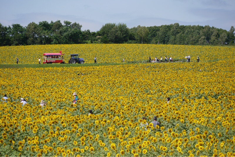 北海道の内陸部の北竜町のひまわり畑に行ってきました。満開のひまわり畑を冷たい風が吹いていました。とんぼの姿に早くも秋を感じました。