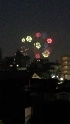 今日は夫が急に大騒ぎし始めてどうなさったのかと思いましたら、なんとベランダから花火が見えるとの事でした。
