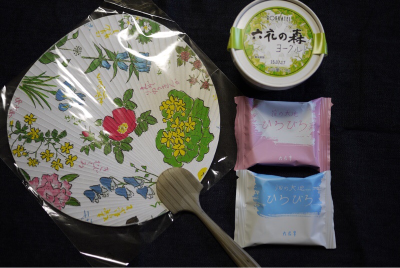 7月5日 六花亭札幌本店がオープンしました。開店記念のお菓子と札幌本店と帯広本店のみで販売のヨーグルトを買ってきました。開店記念のうちわをいただきました。