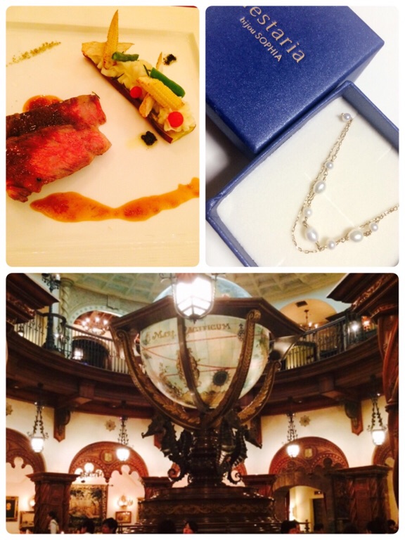 今日は有給をとって、彼とディズニーシーで過ごしてきました。開園の頃には雨があがり、待ち時間も少なくほぼ全てのアトラクションを楽しめました。念願のマゼランズでのディナーに、プレゼントは誕生石のパールのブレスレットでした。色々考えてくれた彼に心から感謝