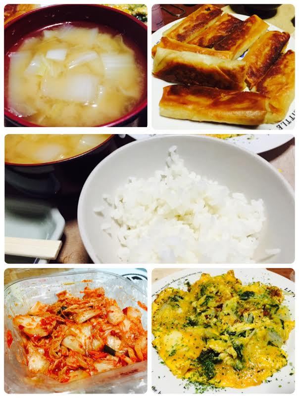春巻と野菜玉とキムチと白菜のお味噌汁♪