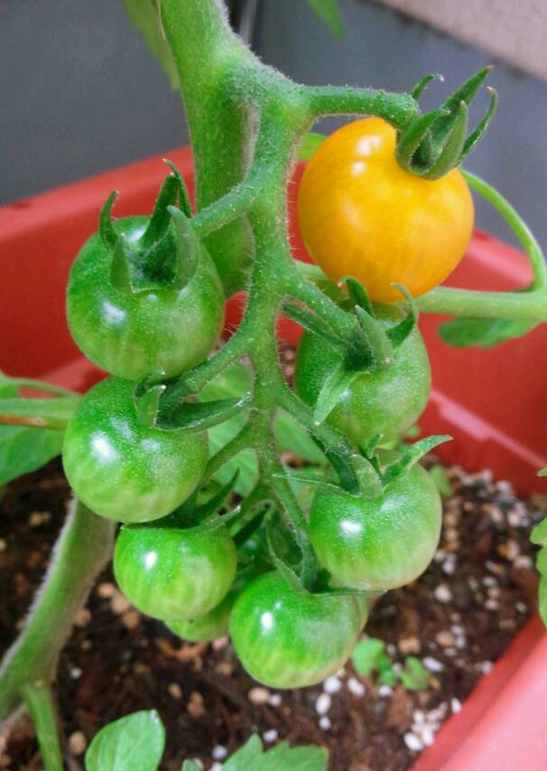こんにちは、うちのミニトマトが色付きました!明日食べようかな(^^)