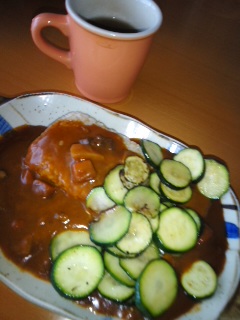 冷凍ご飯が少なめなので、ズッキーニを追加してみた。
