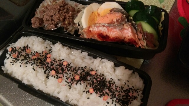 鮭をもう一切れと、無理矢理お詰め致しましたら何だか見た目がごっちゃりしてしまいました。