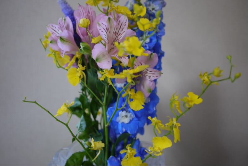 ウォーキングに行ってきました。お花を買ってきました。太陽がまぶしい 爽やかな日でした。9000歩あるきました。
