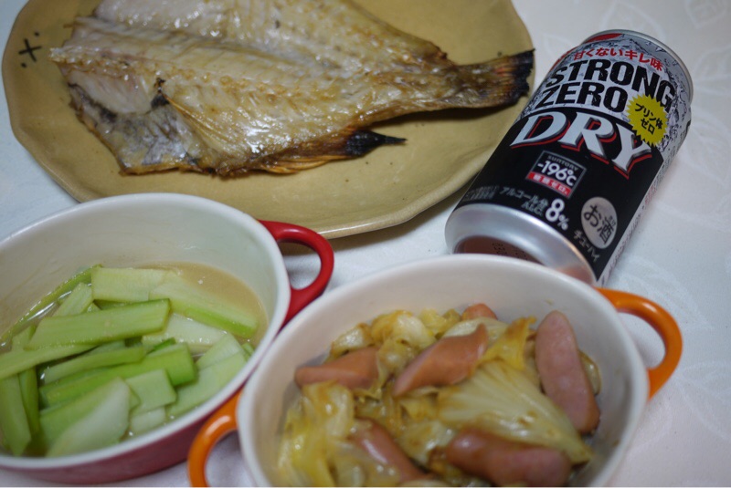 夕ご飯は 赤魚、キャベツとウィンナのウェイパァー煮込み、ウドの酢味噌和えです。きのう産直で買ったウドは 少し長めに酢水にさらして 下ゆでしませんでした。野性味のある方が好きです。お酒は 最近主人がサンクスのクーポンで安く買ってきてくれる中でお気に入りのチューハイをいただきます。