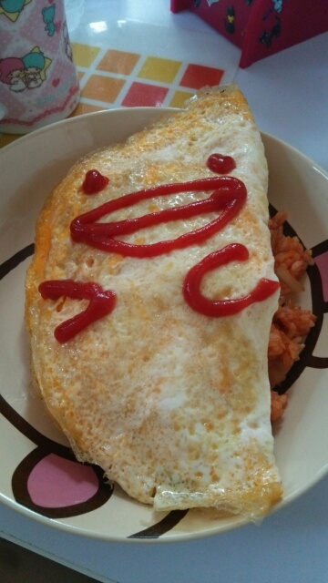 ポーク焼いて卵焼きか目玉焼き。カップ麺もある