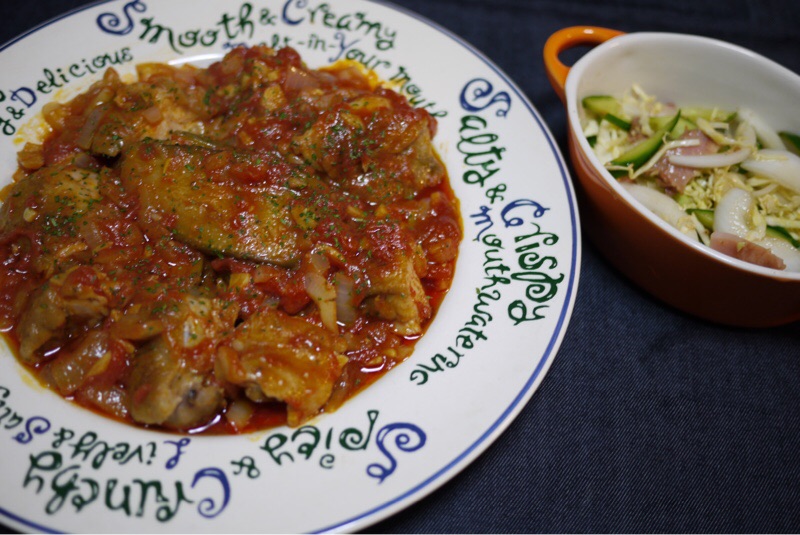 夕ご飯は チキンと茄子のトマトソース煮込み、新玉ねぎの中華サラダです。どちらの料理にもにんにくが入っています。最近 元気なのは にんにくを食べているのと 二つ健康サプリを増やしたせいかなぁ・・・春がきて少しづつ緑が増えていくのは うれしいですね。